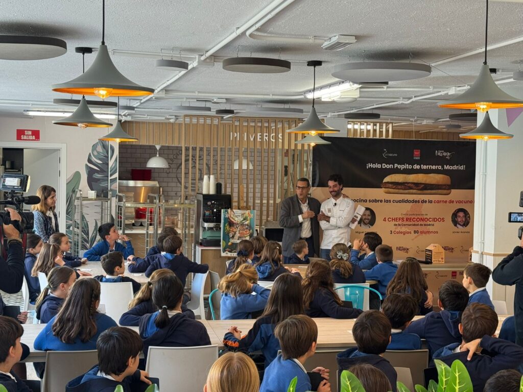 La primera cita ha tenido lugar en el colegio Madre de Dios (Madrid), con la participación del chef Estrella Michelin Javier Aranda, que ha mostrado a los más pequeños la versatilidad del vacuno en la cocina. Los alumnos han podido descubrir que nuestra carne no solo es tierna, jugosa y saludable, sino que también es ingrediente esencial de platos tradicionales y de vanguardia.
